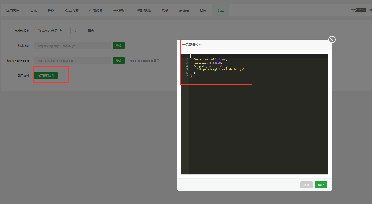 接着再把配置粘贴进去重启Docker服务,就能解决该问题